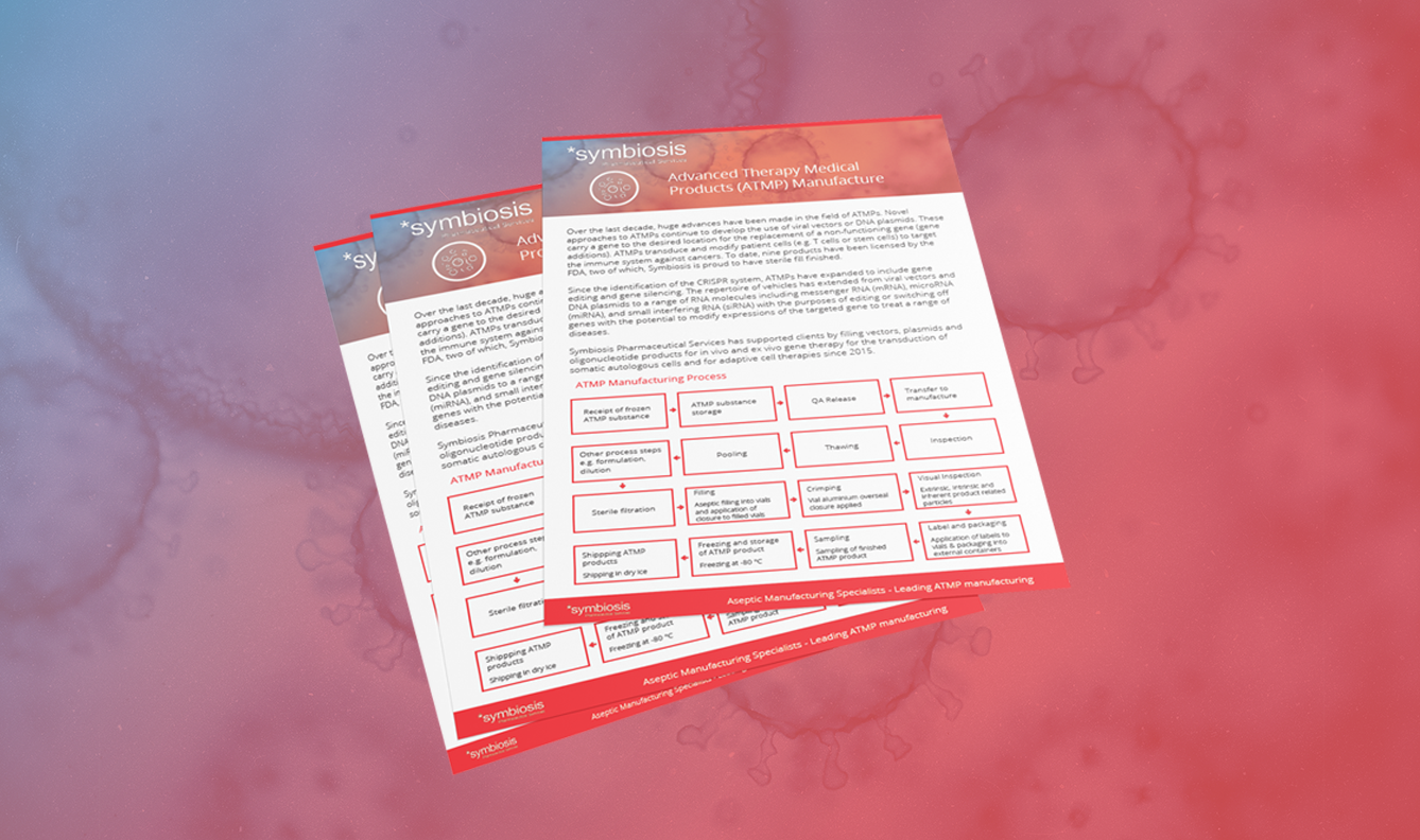 Symbiosis supports the GMP aseptic viral vector manufacturing complemented with manufacture of critical raw materials, including plasmids for Advanced Therapeutic Medicinal Products (ATMPs).